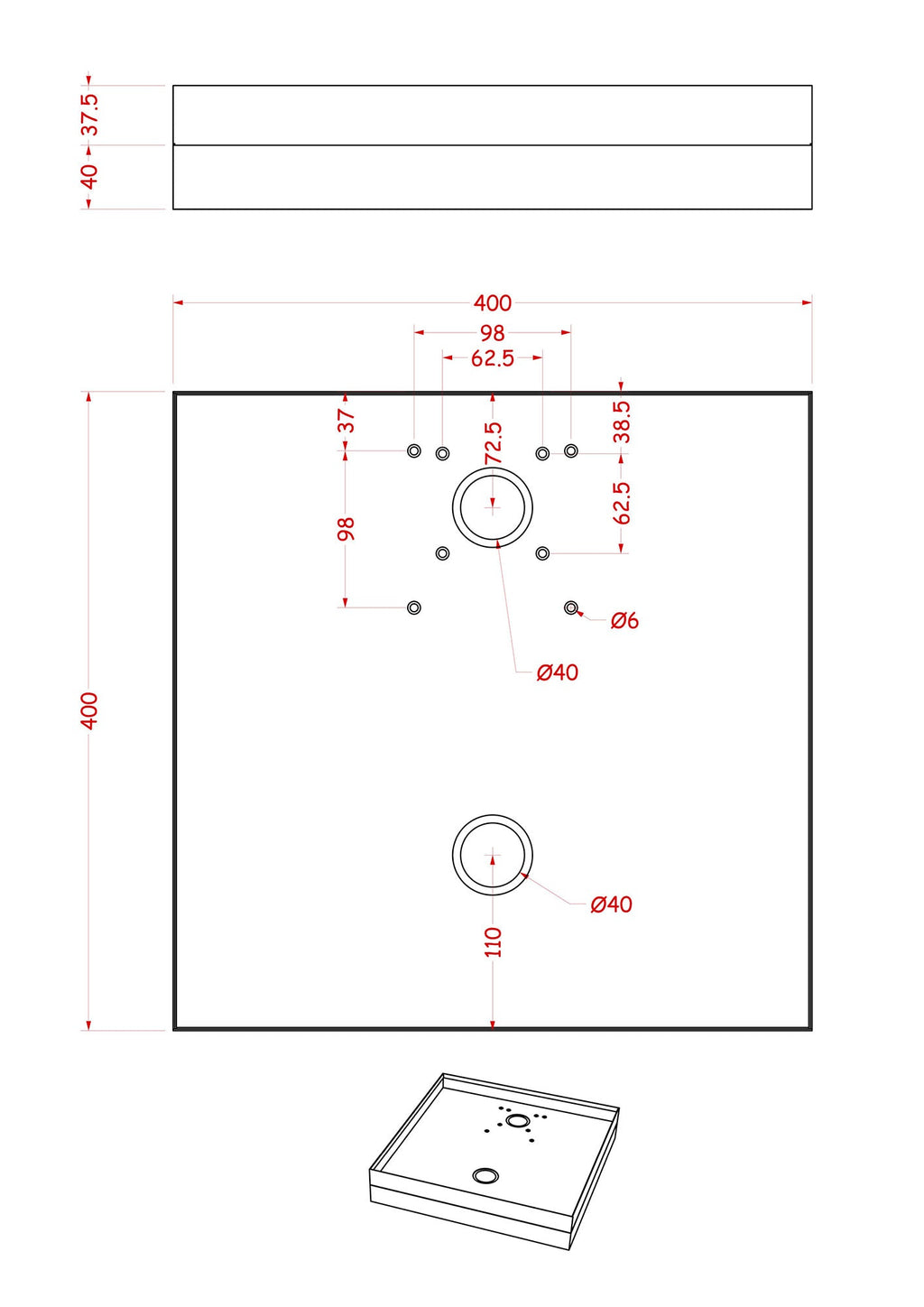 - Dimensioni: H. 8 x L. 40 x P. 40 cm