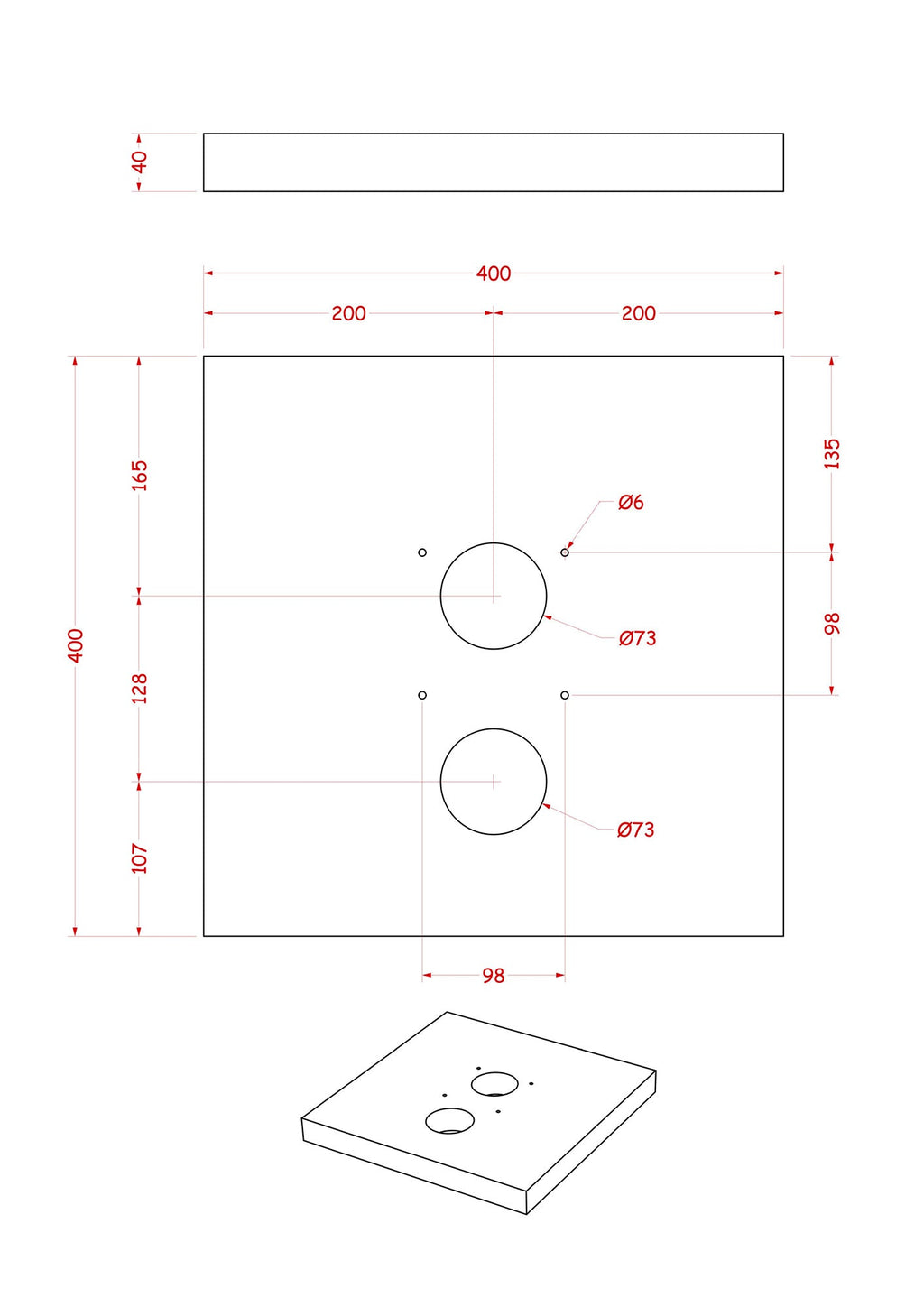Base cemento per la fontana 42/SRV. Le viti e i tasselli sono in dotazione alla fontana.