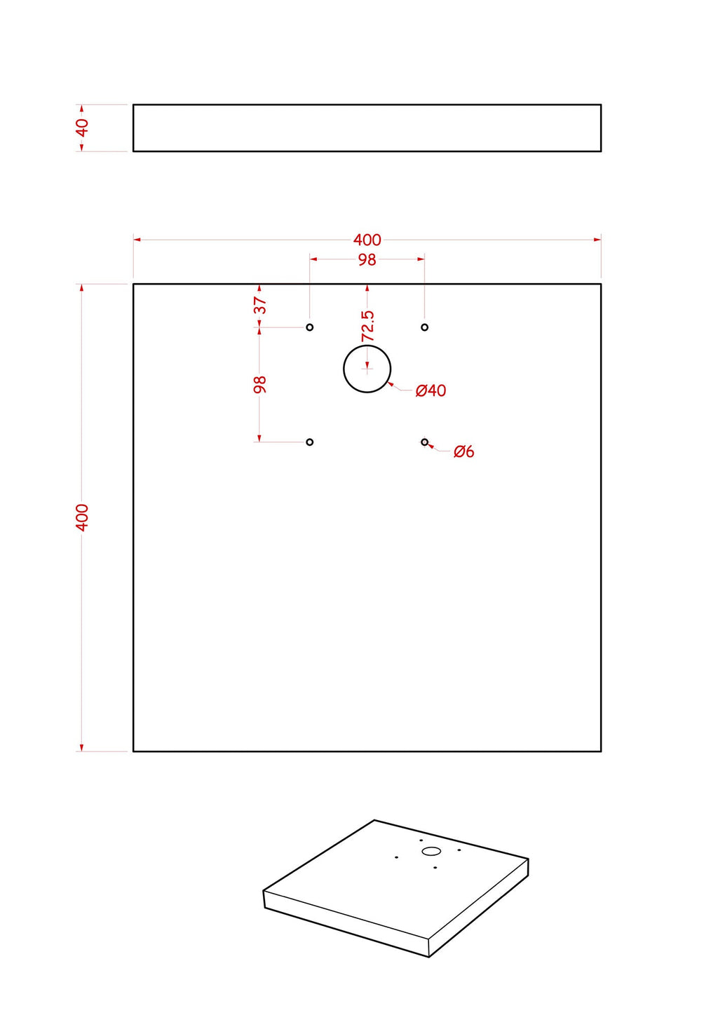 - Dimensioni: L 40 x P 40 x H 5 cm