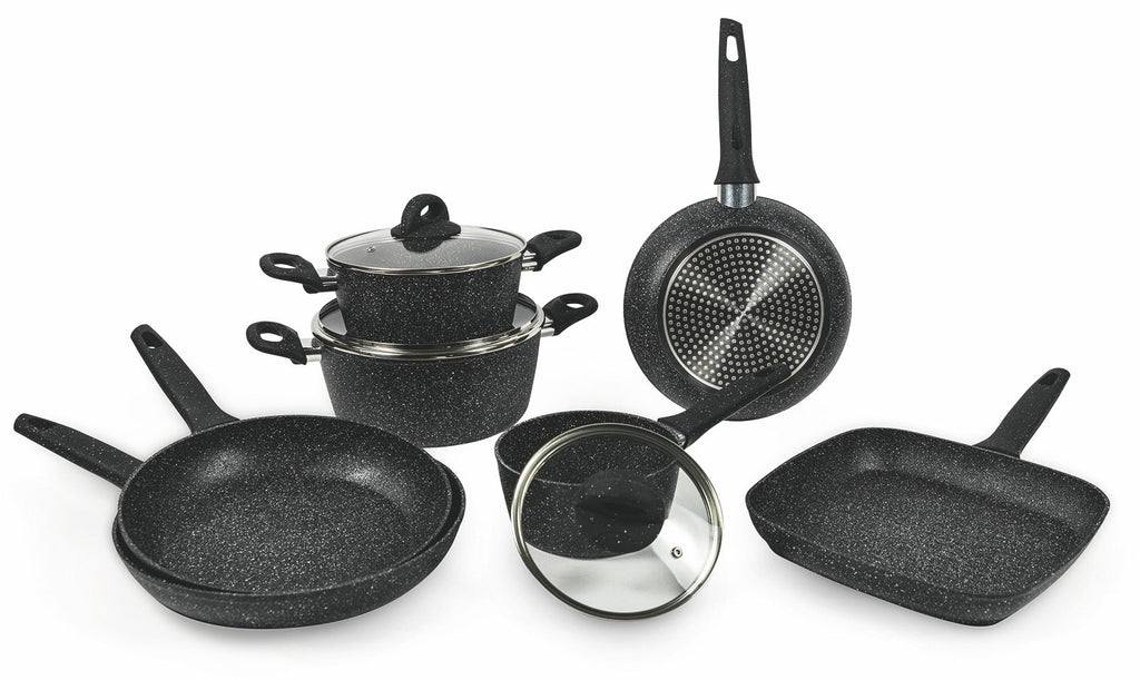 Batteria di Pentole 10 Pezzi in Alluminio Antiaderente Induzione Effetto Pietra VdE Tivoli 1996 1996 Galaxy