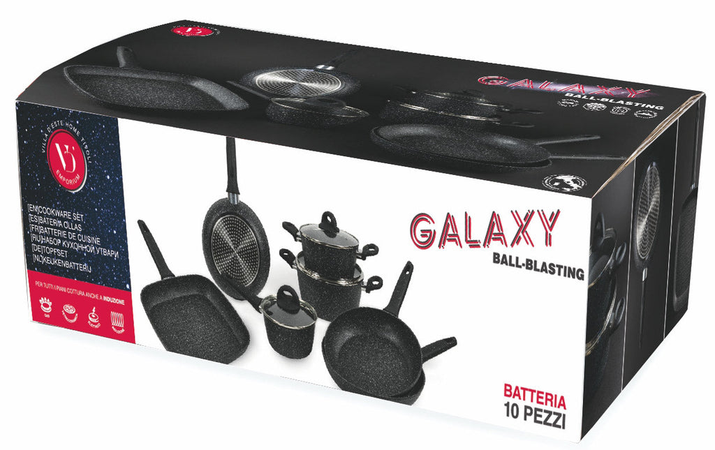 Batteria di Pentole 10 Pezzi in Alluminio Antiaderente Induzione Effetto Pietra Villa du0026#39;Este Home Tivoli Galaxy