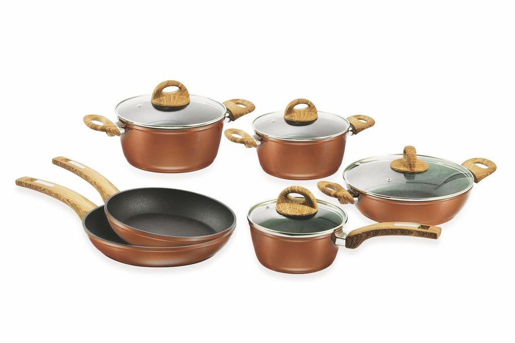 Batteria di Pentole 10 Pezzi In Alluminio Antiaderente Cottura ad Induzione Coperchi In Vetro Copenaghen