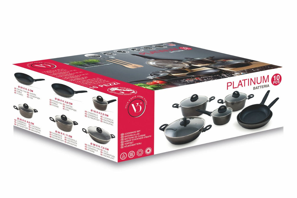Batteria di Pentole 10 Pezzi in Alluminio Antiaderente Villa du0026#39;Este Home Tivoli Amburgo Platinum