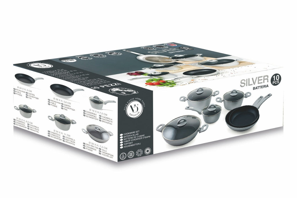 Batteria di Pentole 10 Pezzi in Alluminio Antiaderente Villa du0026#39;Este Home Tivoli Silver