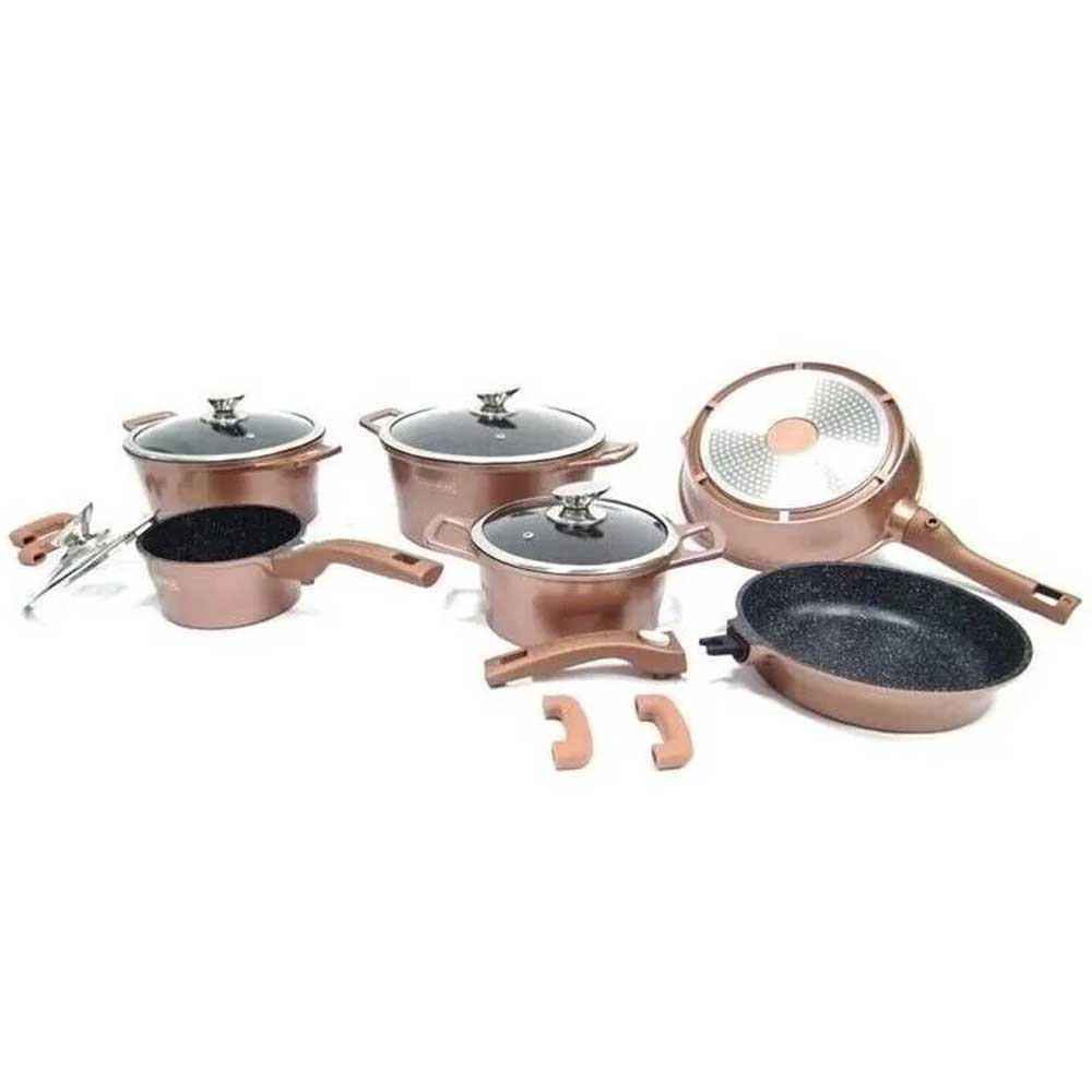 Batteria di Pentole 14 Pezzi in Pietra Antiaderente Induzione Rame