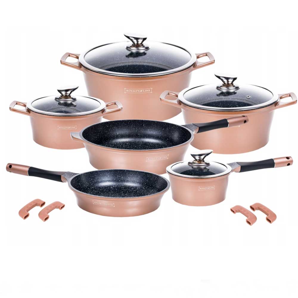 - Set di pentole in alluminio pressofuso da 14 pezzi rivestito in marmo