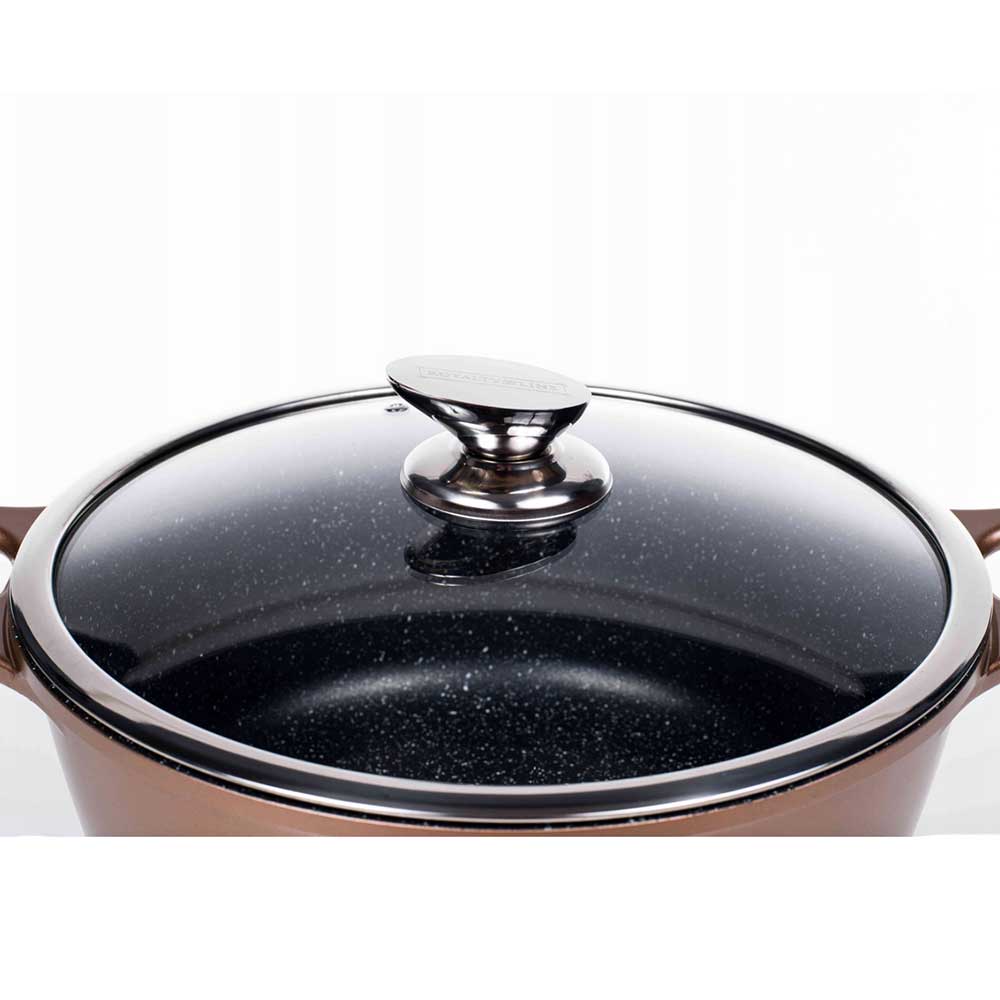- 1x Batterie Pentole e Padelle da Cucina 14 Pezzi Antiaderente In Pietra Lavica Coperchio in Vetro Clip Maniglie Rimovibili Colore Rame