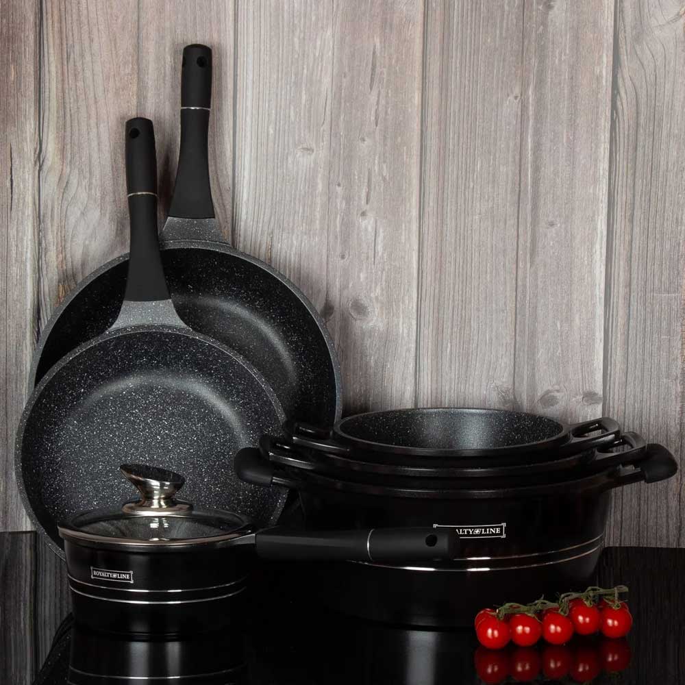- Set di pentole in alluminio pressofuso da 14 pezzi rivestito in marmo