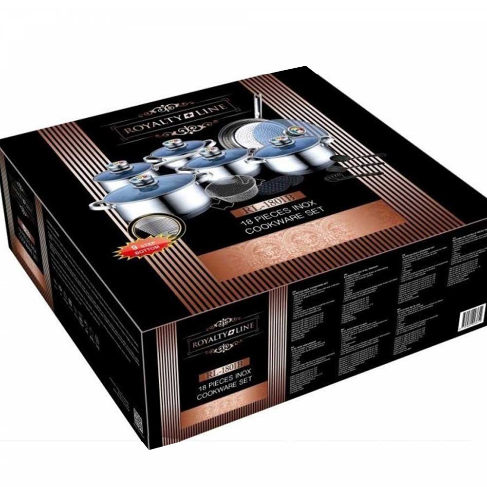 - 1x Pentole in Acciaio Inox da 18 Pezzi Con Coperchio in Vetro