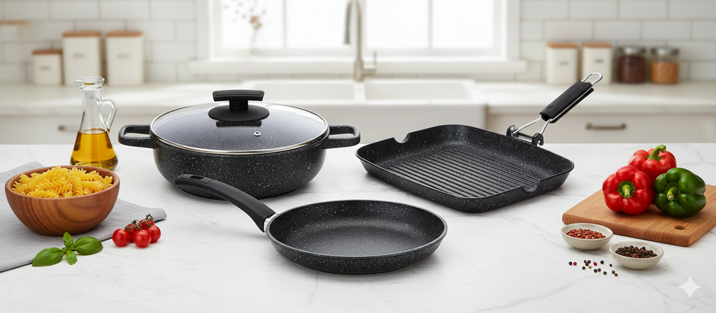 Prodotti in alluminio pressofuso di alta qualità con rivestimento multistrato rinforzato, articoli destinati alle cotture speciali che grazie alle forme particolari esaltano e facilitano la preparazione di tante ricette sia italiane che di altre culture.