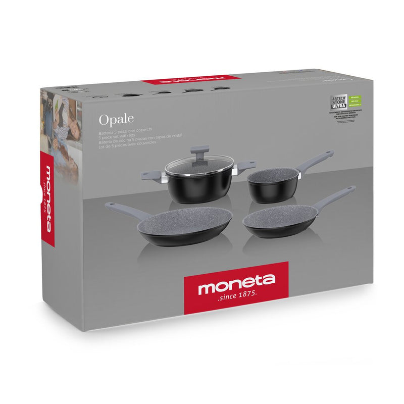 Batteria di Pentole 5 Pezzi Antiaderente Induzione in Alluminio Effetto Pietra Moneta Opale Stone Grey
