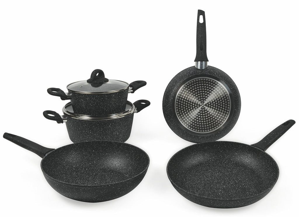 Batteria di Pentole 7 Pezzi in Alluminio Antiaderente Induzione Effetto Pietra VdE Tivoli 1996 1996 Galaxy