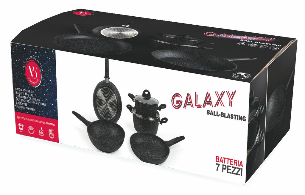 Batteria di Pentole 7 Pezzi in Alluminio Antiaderente Induzione Effetto Pietra Villa du0026#39;Este Home Tivoli Galaxy