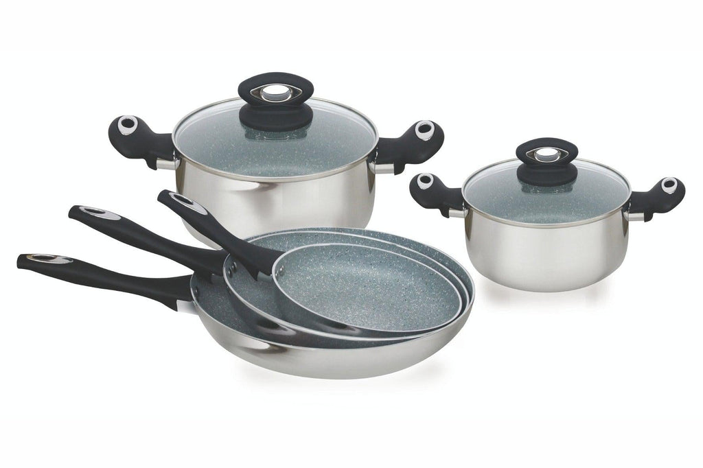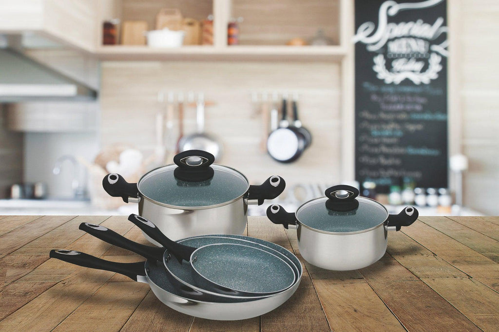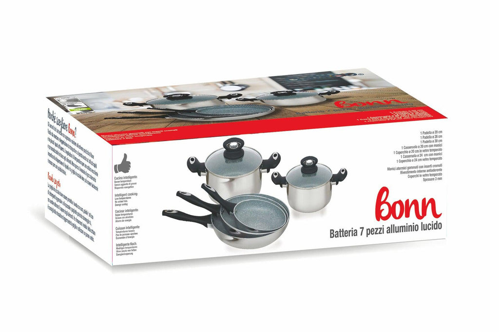 Batteria di Pentole 7 Pezzi In Alluminio Antiaderente Cottura ad Induzione Coperchi In Vetro Bonn
