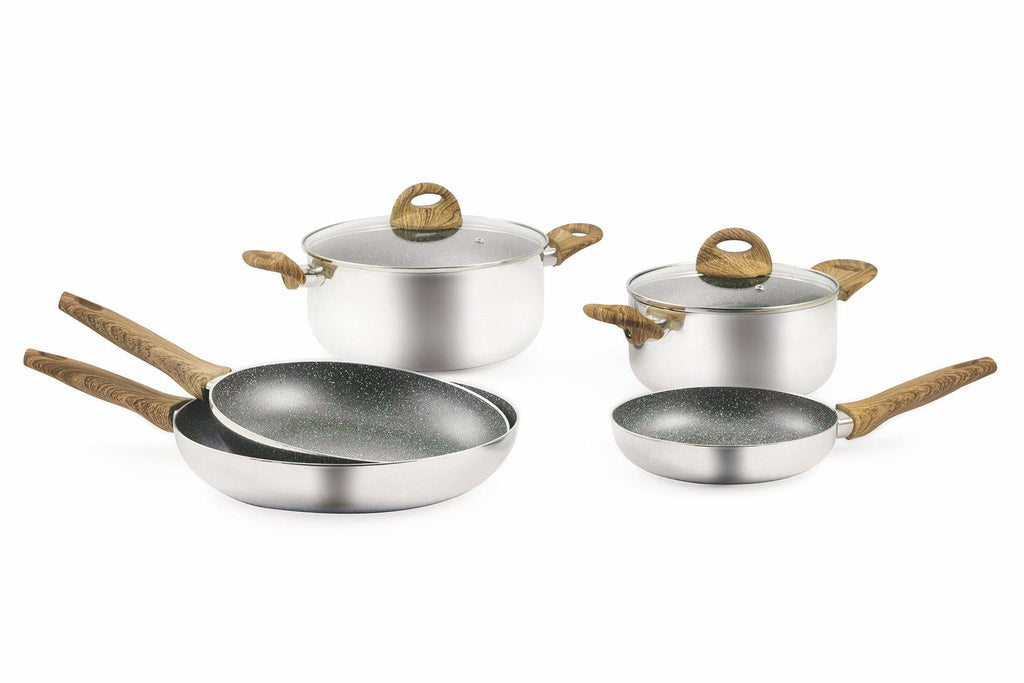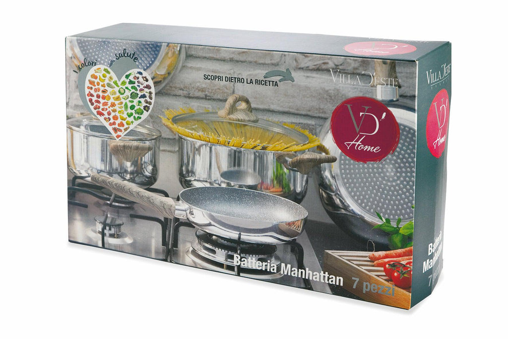 Batteria di Pentole 7 Pezzi In Alluminio Antiaderente Coperchi In Vetro Manhattan