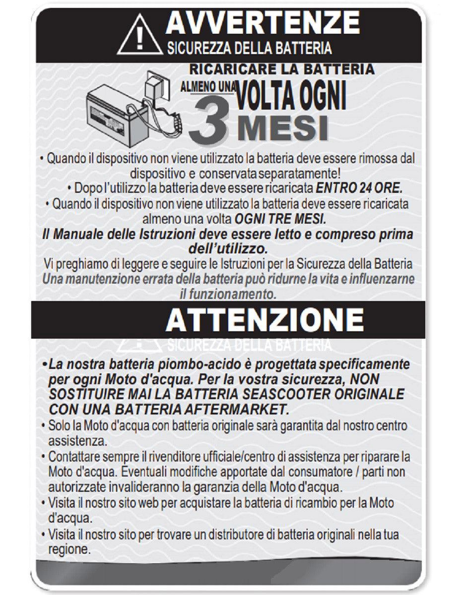 Batteria sostitutiva Piombo-Acido 12V / 12AH specifica per modelli di Seascooter RDS 300 - 280 - 250 / MARINE 300 - 280 - 250.