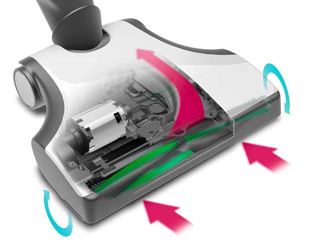 Grazie alla nuova funzione che blocca la rotazione delle spazzole è possibile anche pulire i tappeti a pelo lungo.