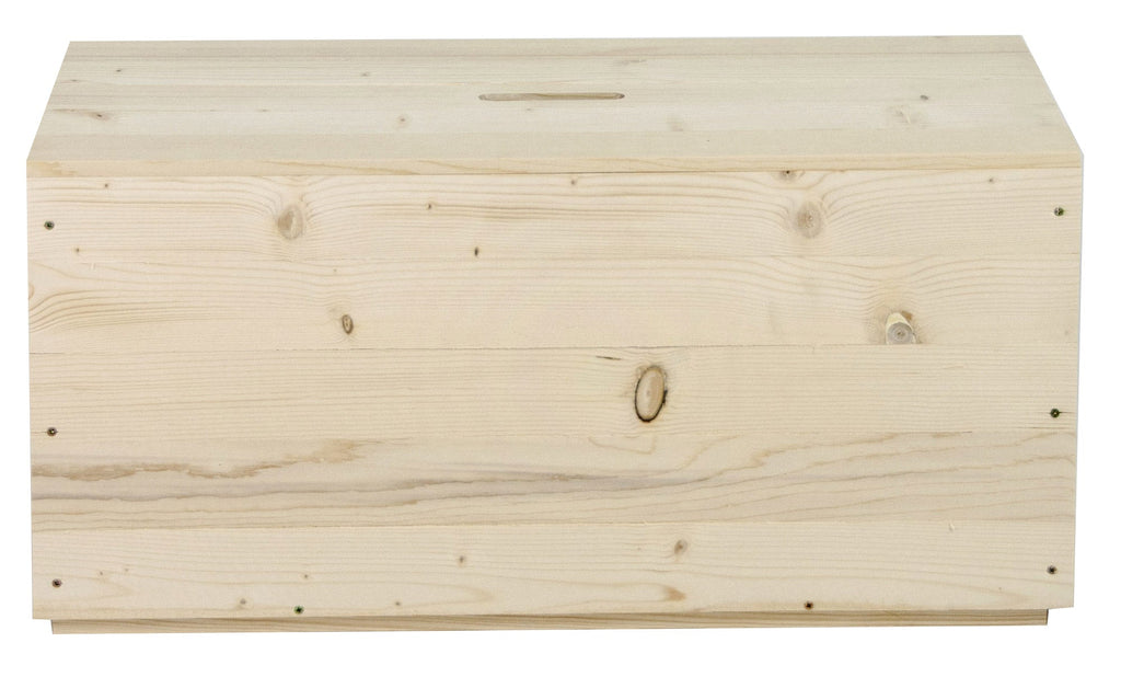 Baule in legno di Abete massello grezzo levigato, coperchio ad appoggio, removibile multiuso, può essere lasciato così o finito con vernici o impregnante.