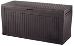 Con una capacità di 270 litri, il baule Comfy è ideale per riporre utensili, cuscini e accessori. Grazie al suo sistema di ventilazione e alla resistenza agli agenti atmosferici, tutti il contenuto rimarrà sempre asciutto e ventilato. La struttura resistente permette anche la seduta fino a 2 adulti sul coperchio. Si assembla in meno di 5 minuti e non richiede manutenzione.