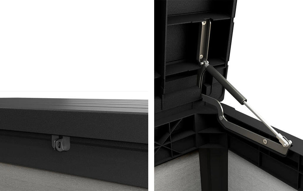 Il baule Denali mantiene i tuoi spazi esterni puliti e in ordine. La sua caratteristica finitura effetto legno è realizzata in DUOTECH, che resiste agli UV e agli agenti atmosferici mantenendo il contenuto asciutto e ventilato. Il sistema a pistoni facilita l'apertura e chiusura del coperchio.