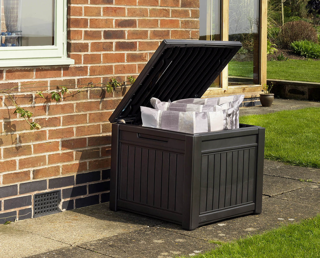 Baule Cassapanca da Esterno 72,2x59x71 cm in Resina Effetto Rattan Keter Cube Wood Marrone