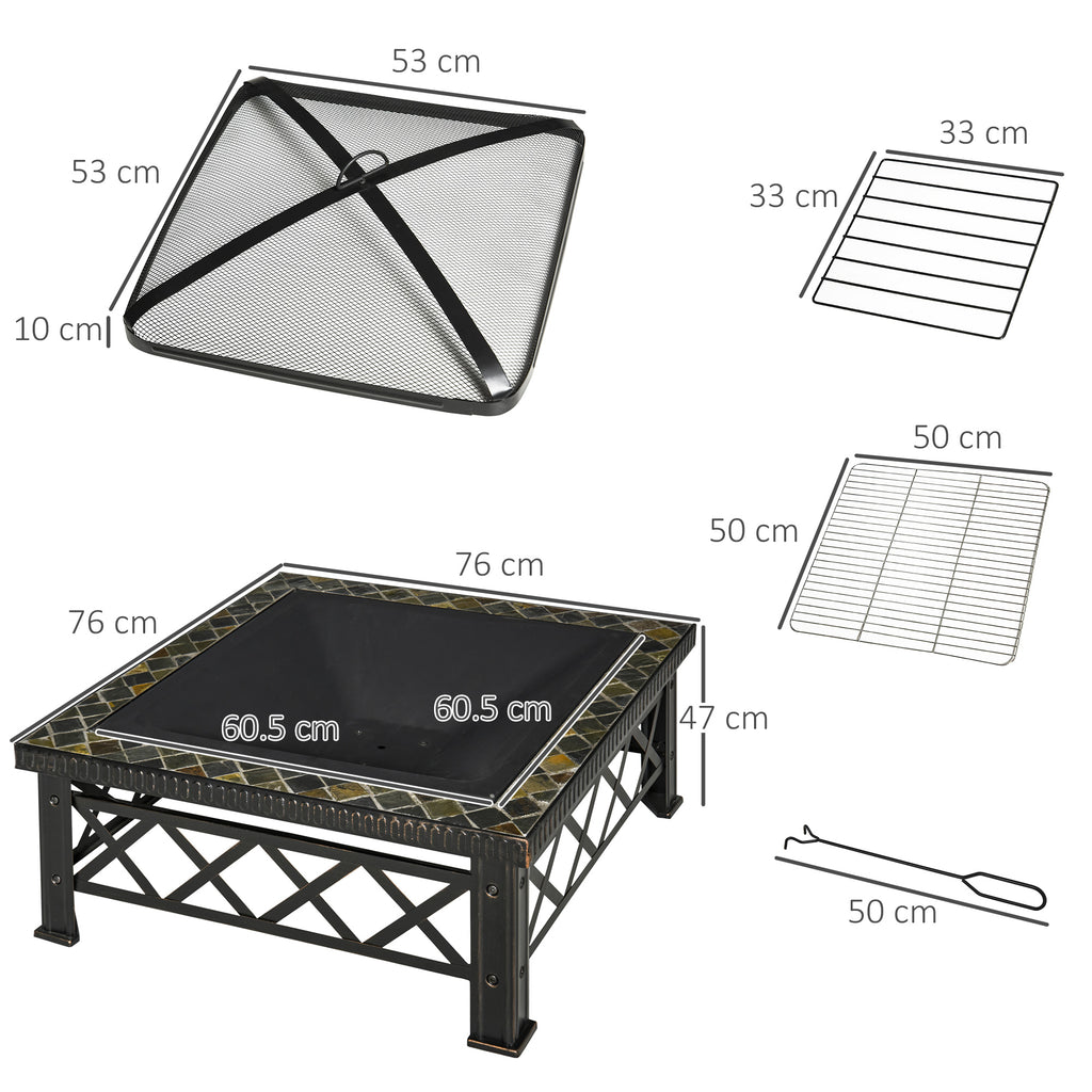 - BRACIERE DA GIARDINO: Questo braciere quadrato ha una struttura in metallo nero con un pannello decorativo sui lati in ardesia. È perfetto per le tue serate all'aperto, in giardino, in terrazza o nel patio per creare una piacevole atmosfera.