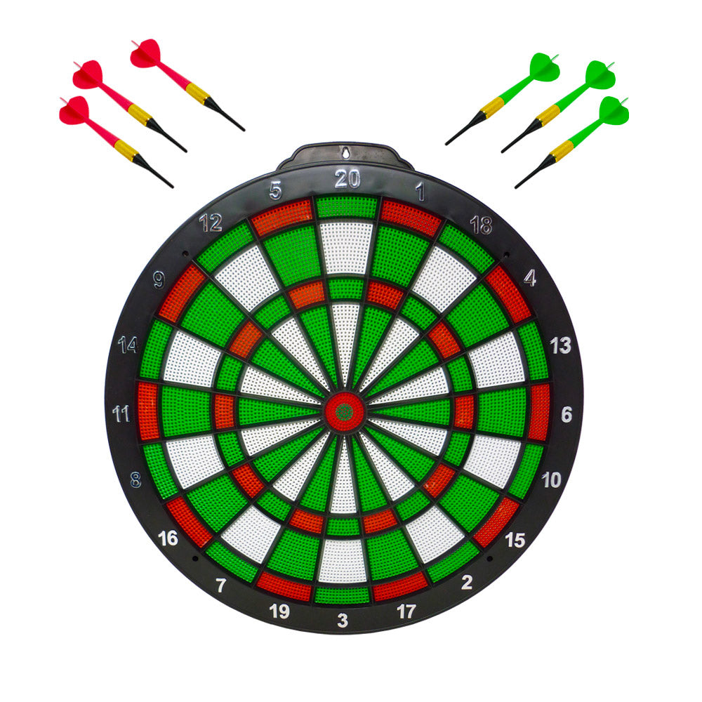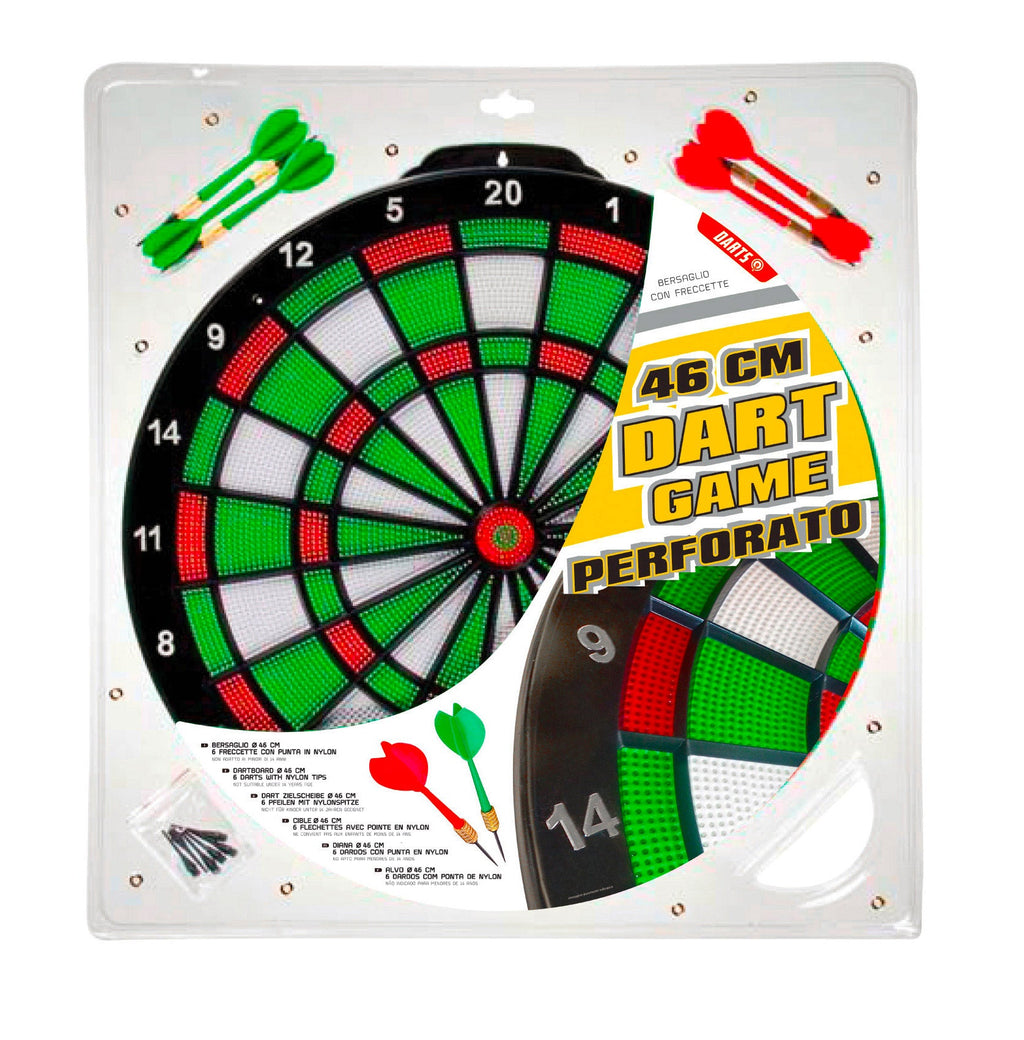 Bersaglio Perforato Ø46x2 cm con 6 Freccette Punta in Nylon Multicolore
