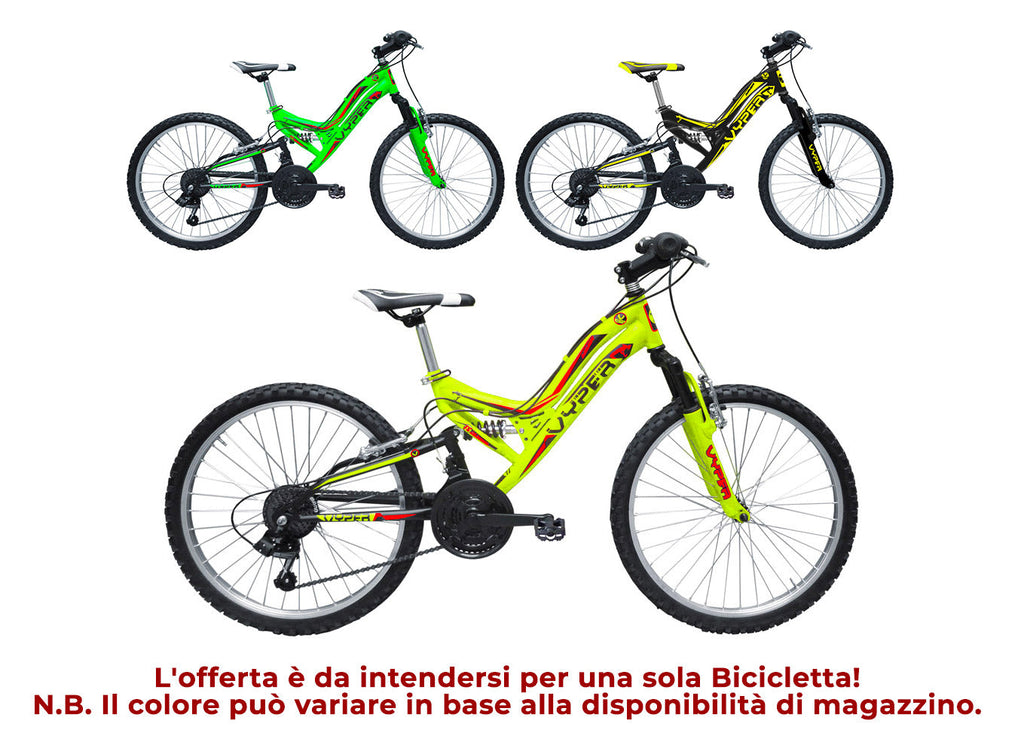 Bicicletta MTB Ragazzo 24” 6 Velocità Vyper Biammortizzata Giallo o Nero o Verde