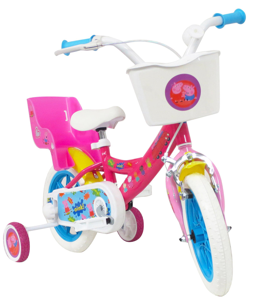 La bicicletta da 12 pollici bambina di Peppa Pig è specificamente studiate per accompagnare i vostri figli nel mondo delle due ruote dai 2 ai 4 anni di età. La bicicletta 12 pollici è stabile e sicura grazie alle rotelle laterali removibili, agli pneumatici in maretiale eva antiscivolo e sicura grazie al freno anteriore di tipo caliper. Ha un telaio in metallo, cerchi in plastica stampata, ed è accessorta con cestino anteiore personalizzato Disney Minnie un campanello.