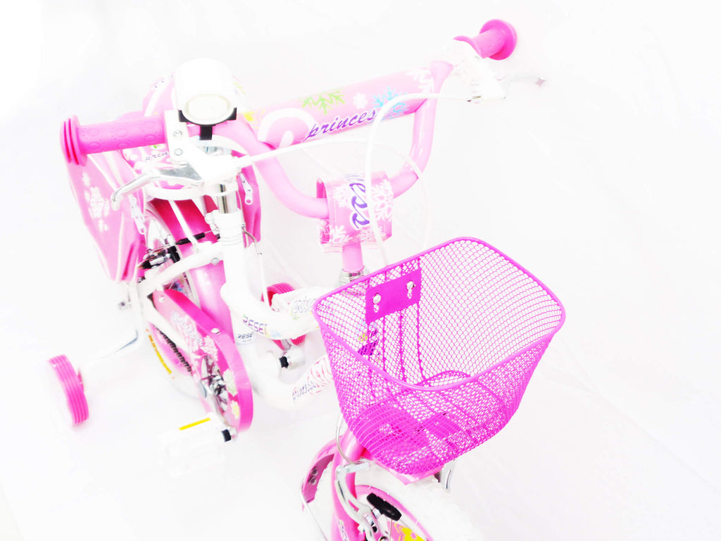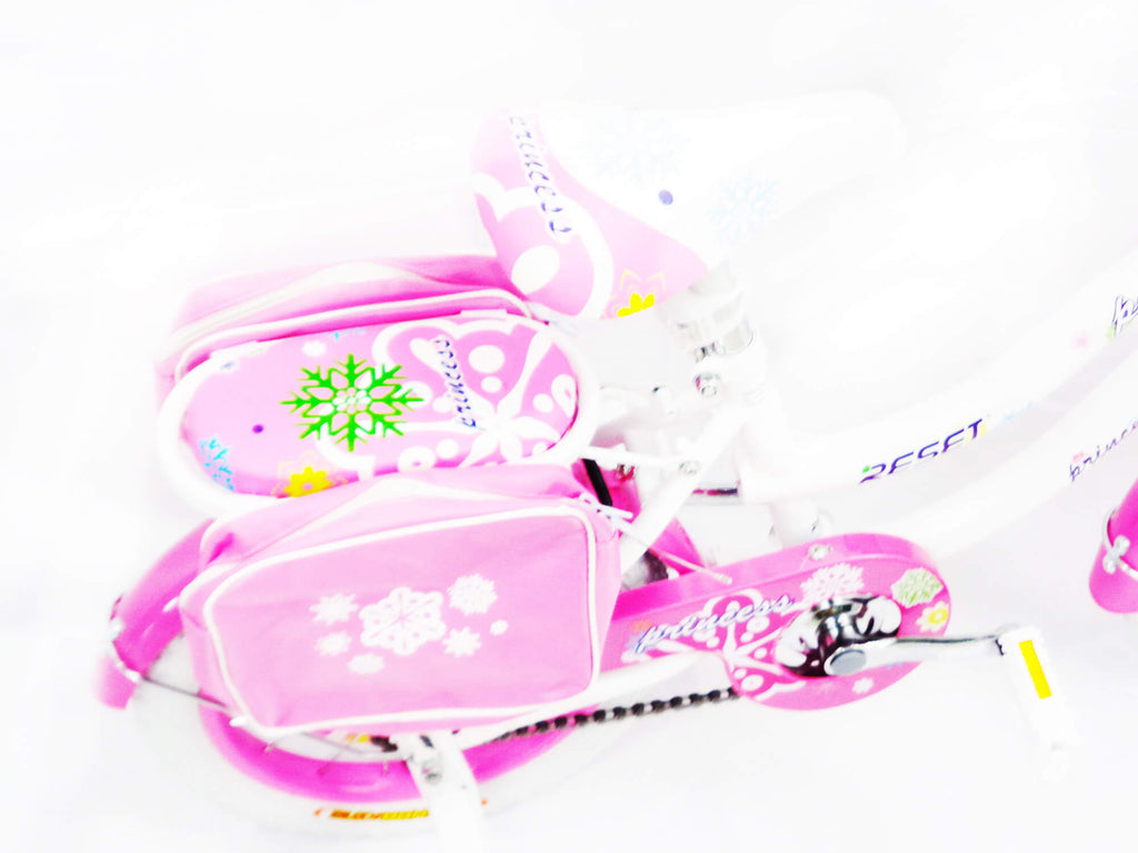 Bicicletta per Bambina 12" 2 Freni con Cestino e Borse Laterali Bianca e Rosa