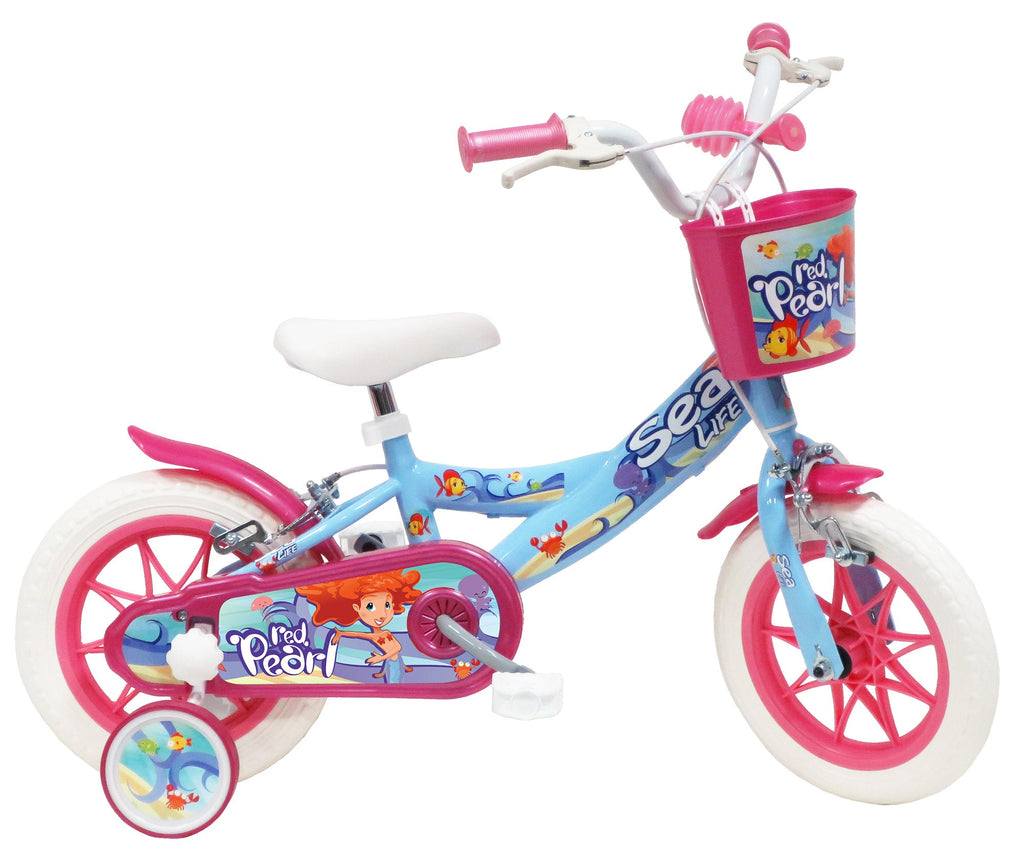 Bicicletta per Bambina 12" 2 Freni Gomme in EVA Sea Life Verde Marine e Rosa