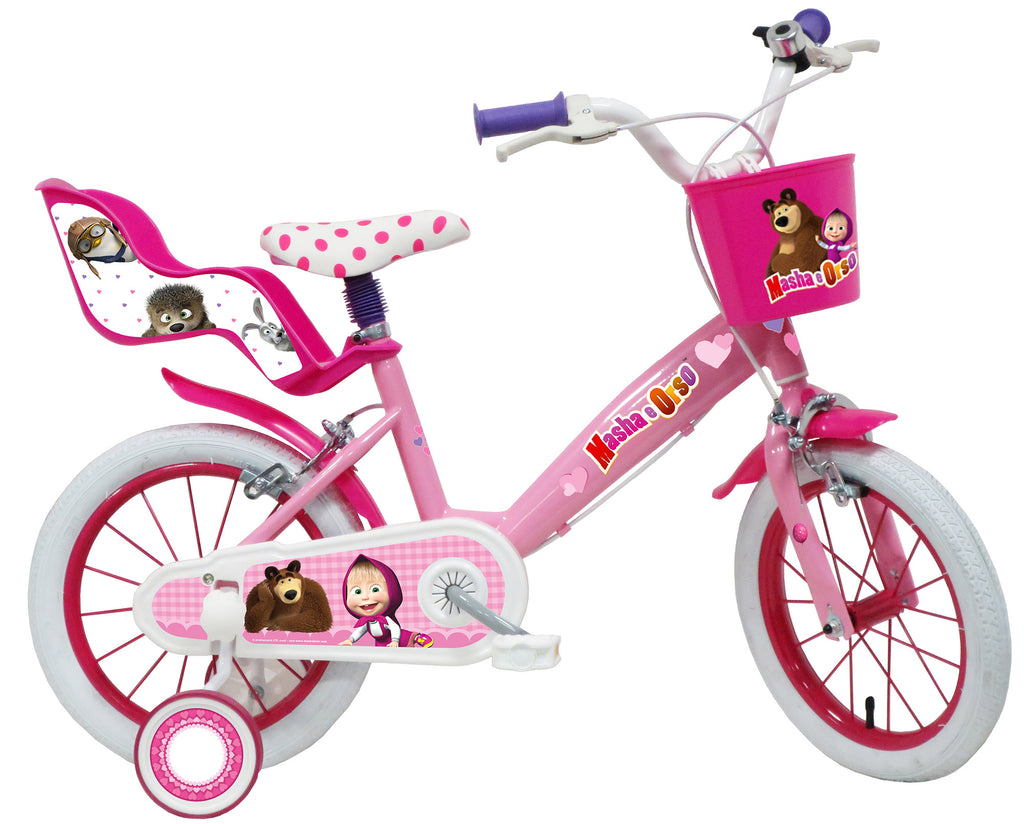Bicicletta per Bambina 14" 2 Freni Masha e Orso Rosa