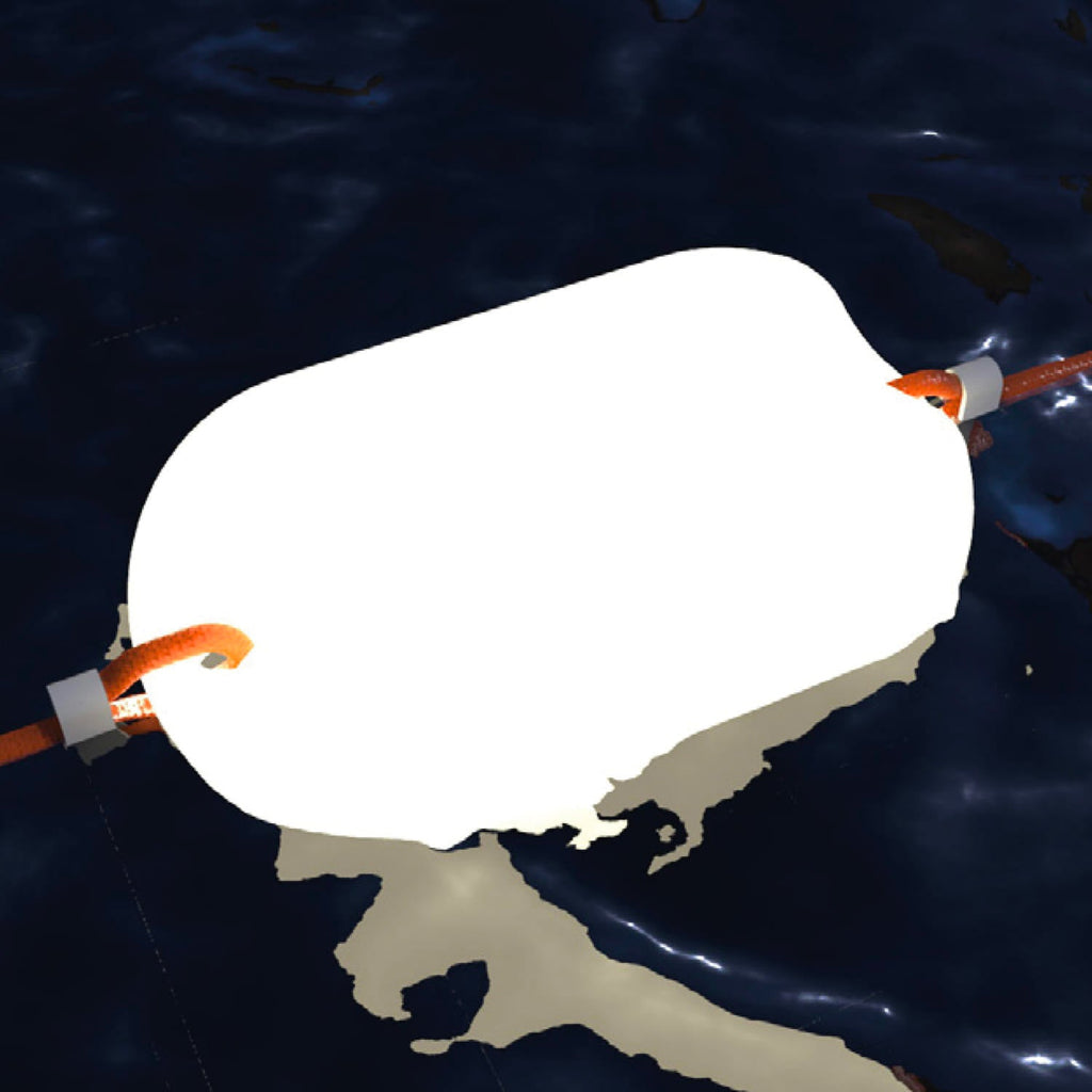 Boa galleggiante luminosa in PE Bianco opaco. La boa si ricarica autonomamente con la luce solare, senza l'uso del cavo di alimentazione.