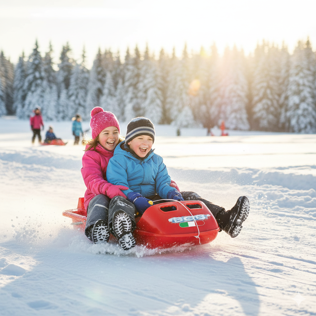 Grazie a questa Slitta Bob a due a 2 posti potrete divertirvi sulla neve in tutta sicurezza grazie alla robusta struttura in Polipropilene ed alle Leve direzionali frenanti in metallo molto robuste. Dotato di cordino per il traino per poterlo trasportare in salita o trascinarlo in piano per agevolare gli spostamenti dei bimbi più stanchi.