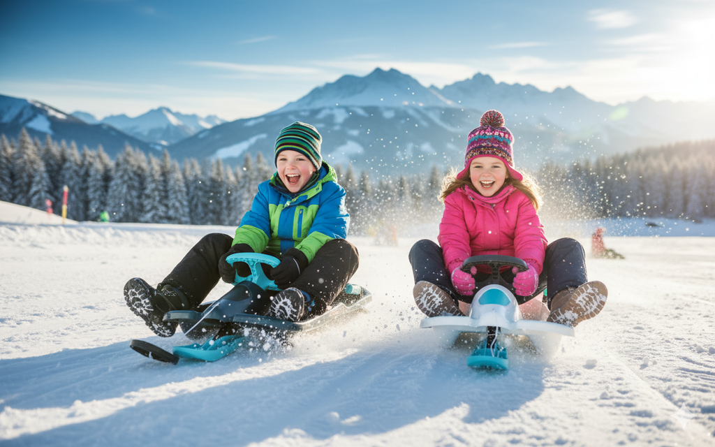 Bob Slittino da Neve 98x45x23 cm 1 Posto Skipper Bianco o Blu Petrolio