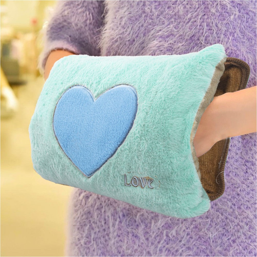 Borsa Acqua Calda Elettrica Ricaricabile Scaldamani Cuore a Peluche Verde