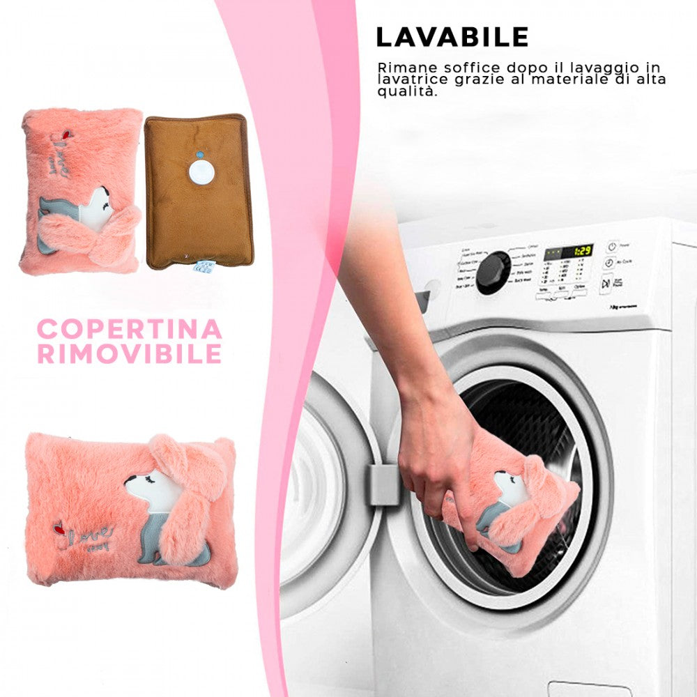 Questa simpatica borsa dell'acqua calda è rivestita con morbido tessuto vellutato con tasca in peluche imbottito, rimovibile e lavabile, permettendo una massima igiene. Ideale per riscaldare mani, piedi, alleviare dolori muscolari, renali o per dolori mestruali.