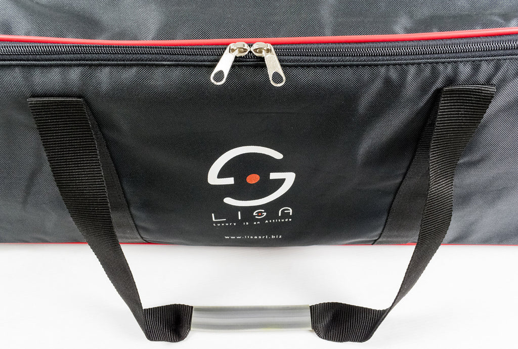 Borsa per barbecue LISA Etna Maxi, le borse sono dotate di due lunghi manici da 60 cm con morbide impugnature imbottite, di piedini gommati anti-sfregamento sul fondo e di rigide pareti interne removibili che permettono di trasportare comodamente i barbecue LISA.