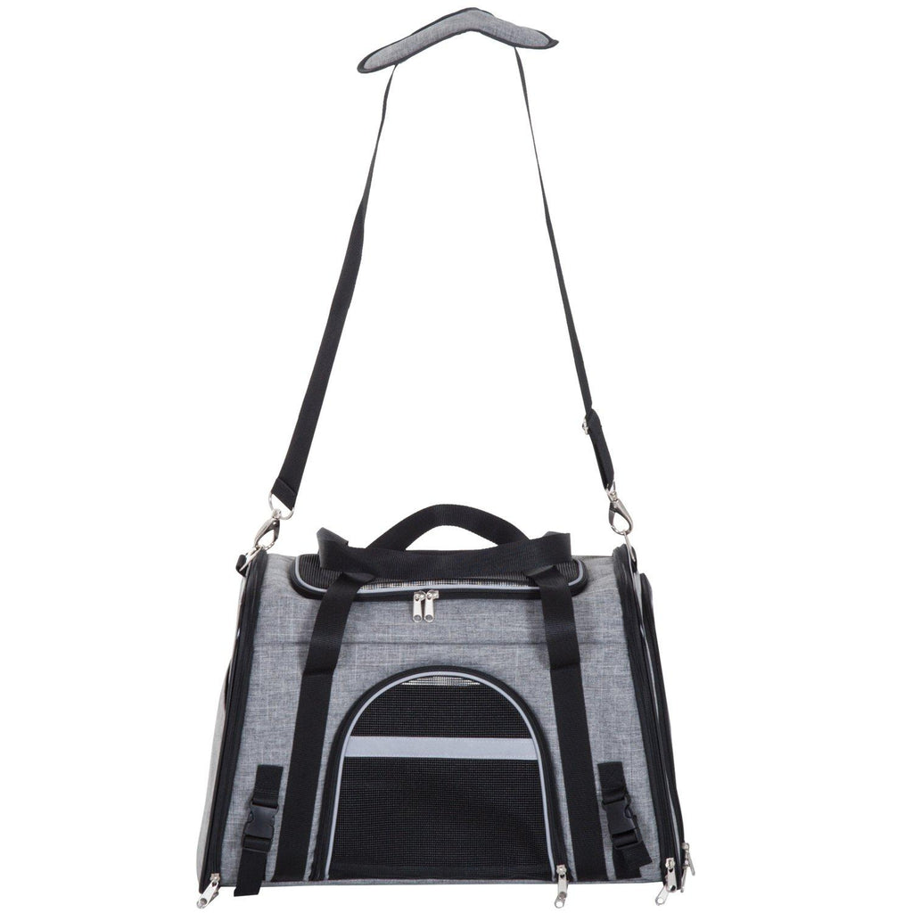 Borsa Trasportino Pieghevole per Cani Gatti con Tracolla in Tessuto Oxford Grigio 50x26.5x33 cm