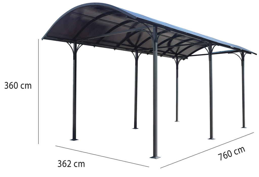 Box Auto da Esterno 3,6x7,6xh3,6 m in Alluminio Copertura in Policarbonato 6mm