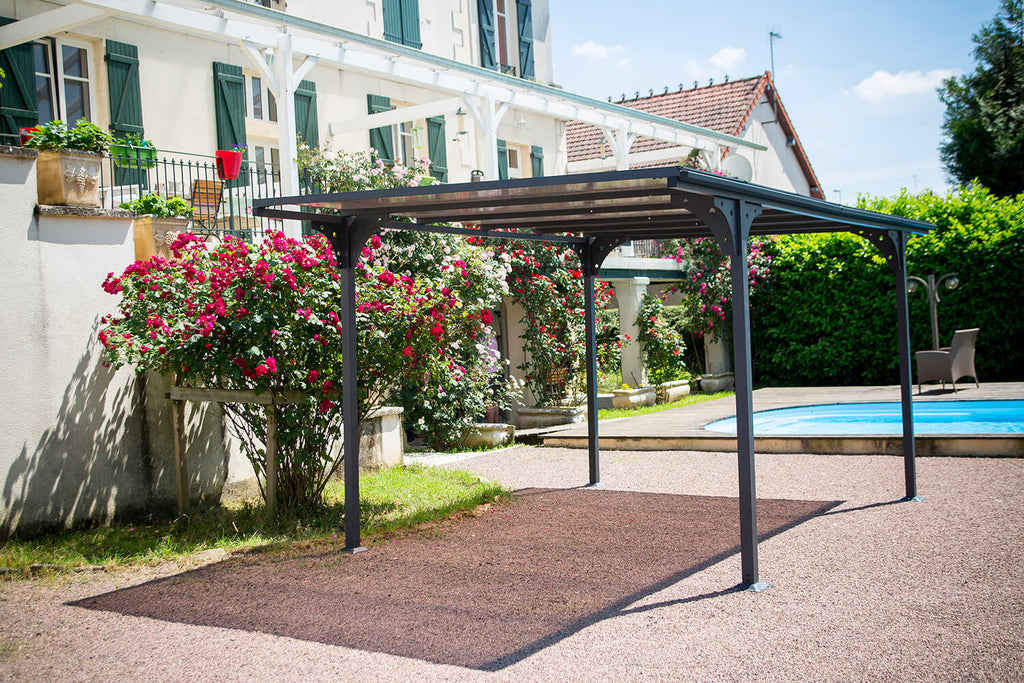 - Suggerimenti per la posa in opera: A causa delle dimensioni del posto auto coperto, consigliamo l’impiego di 4 persone, in particolare per montarlo sui suoi supporti. Installare su soletta in cemento. Operazione da effettuare prima della posa in opera e in tempo utile per un perfetto consolidamento.