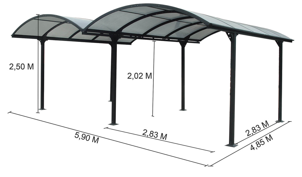 Box Auto Doppio da Esterno 6x4,8 m in Alluminio Copertura in Policarbonato 6mm