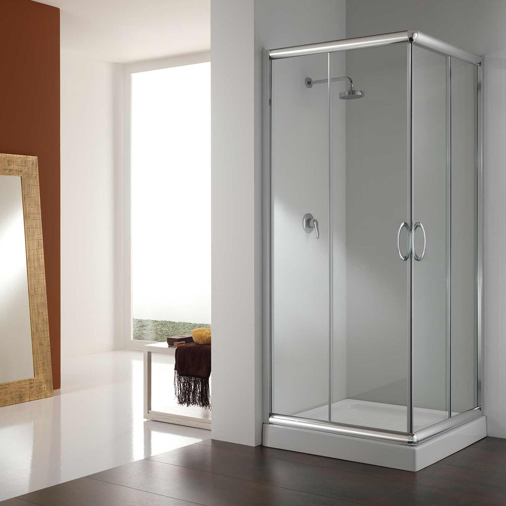 Box Doccia Angolare 80x90 cm 2 Ante Scorrevoli in Cristallo Trasparente 6mm H185 Fosterberg Aarhus