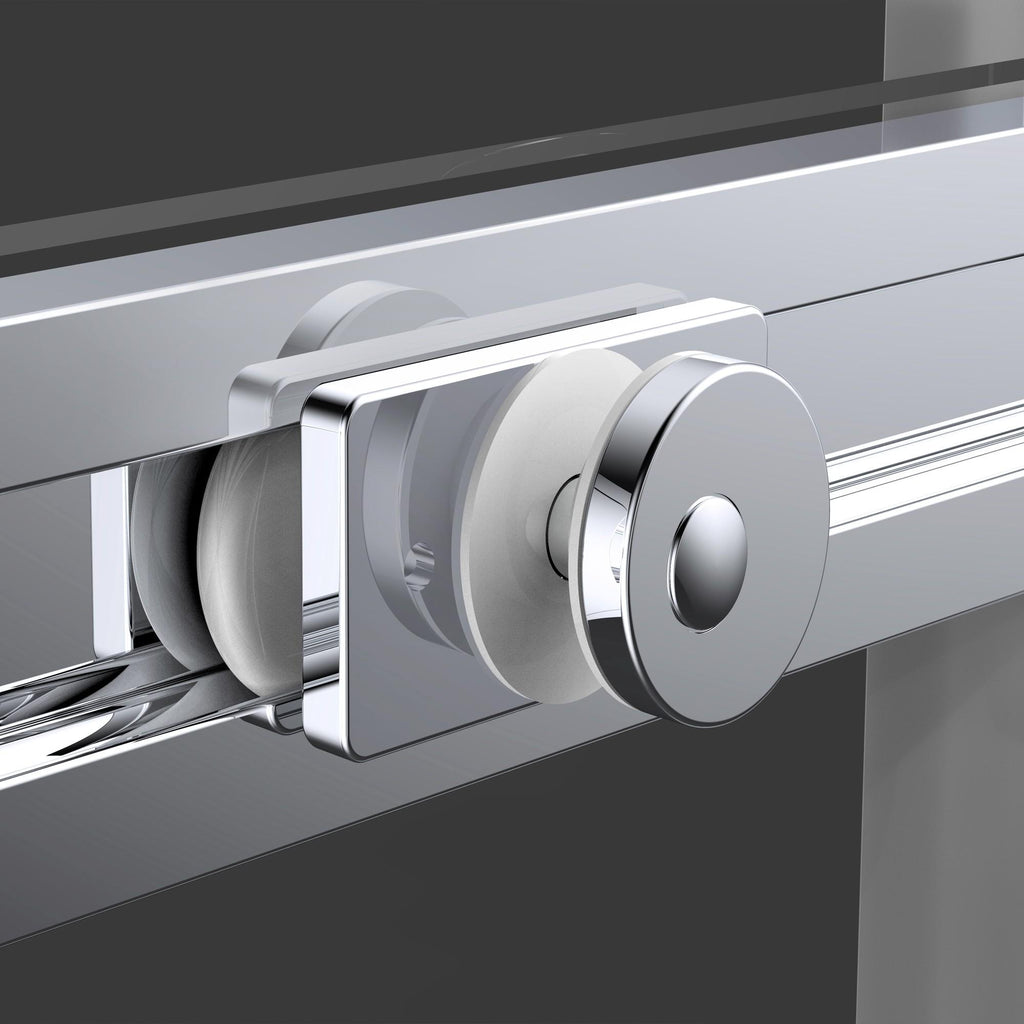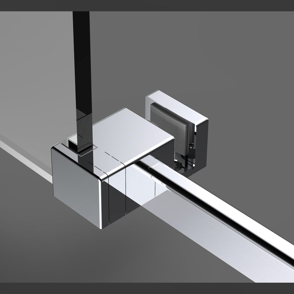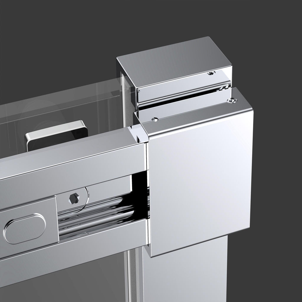Finiture pregiate per chi vuole il massimo da un prodotto. 4 cuscinetti superiori reggono la porta in modo solido e sicuro, struttura delle ruote in acciaio. La porta scorrevole è dotata di una chiusura magnetica, la porta chiude sul lato fisso appoggiandosi su un profilo in alluminio anodizzato che contiene il magnete preservandone l'integrità nel tempo. Una coppia di maniglie in acciaio inox completano il design della porta dando un estetica minimalista a tutta la cabina doccia. Struttura del box doccia in alluminio anodizzato semilucido una via di mezzo tra i profili cromati e i profili spazzolati.