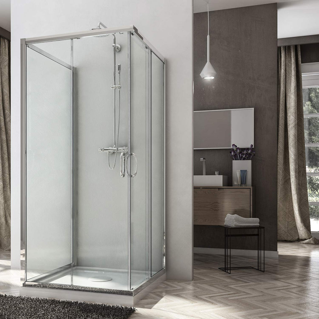 - Box doccia a tre lati composto da 1 lato fisso e da 2 lati con apertura scorrevole