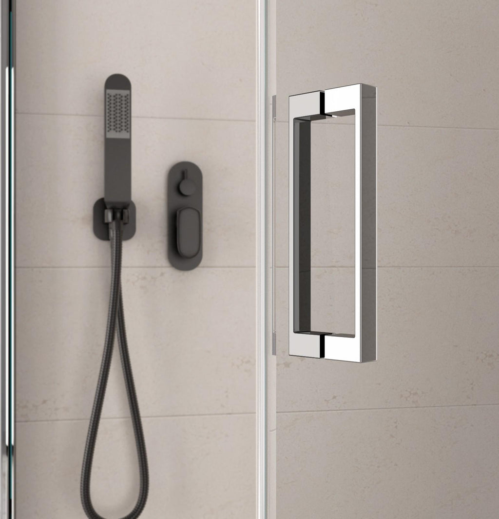 Box Doccia a due lati in cristallo 6 mm trasparente composto da un lato fisso e un porta doccia con chiusura a soffietto con sistema door up, con cerniere in ottone croma ultra resistenti. Chiusura magnetica per una tenuta stagna perfetta evitando così fuoriuscite di acqua. La Cabina doccia è reversibile, significa che il box doccia può essere montato a destra o a sinistra.