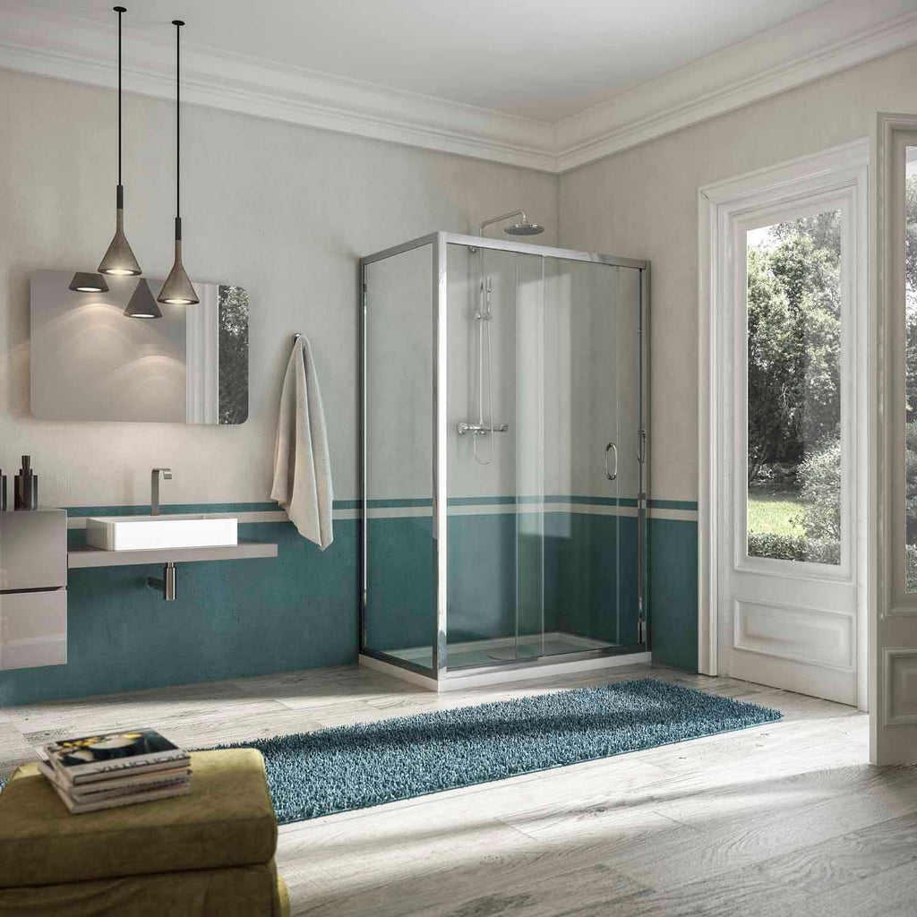 - Guarnizioni con aletta anti-gocciolamento sull'anta fissa e sulla porta scorrevole