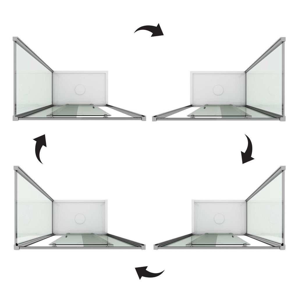 90CM ed 1 lato con 1 anta fissa ed 1 porta scorrevole da 150 CM - Sistema di scorrimento della porta scorrevole con scocca cromata ed 8 ruote in nylon con cuscinetti a sfera