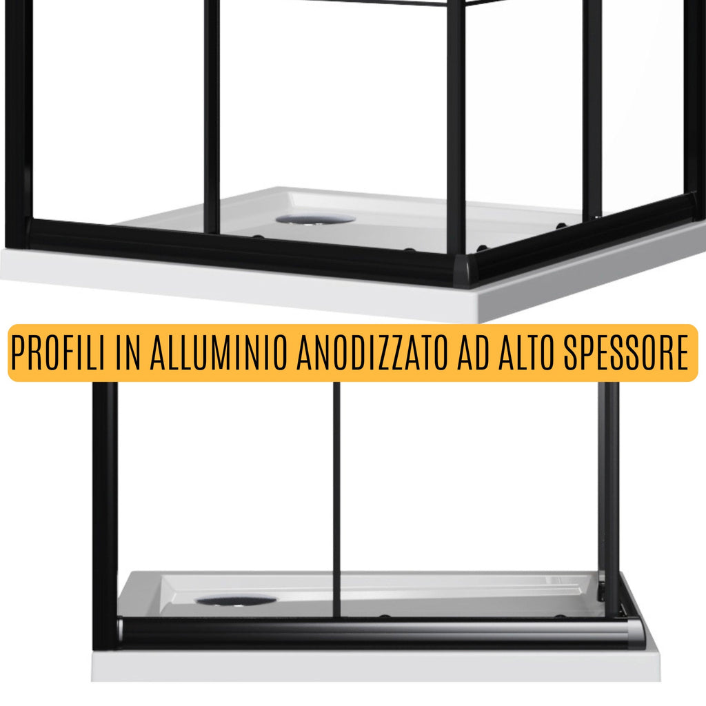 Box Doccia Angolare 2 Ante Scorrevoli 80x80 cm in Cristallo 6 mm H185cm Profilo Nero