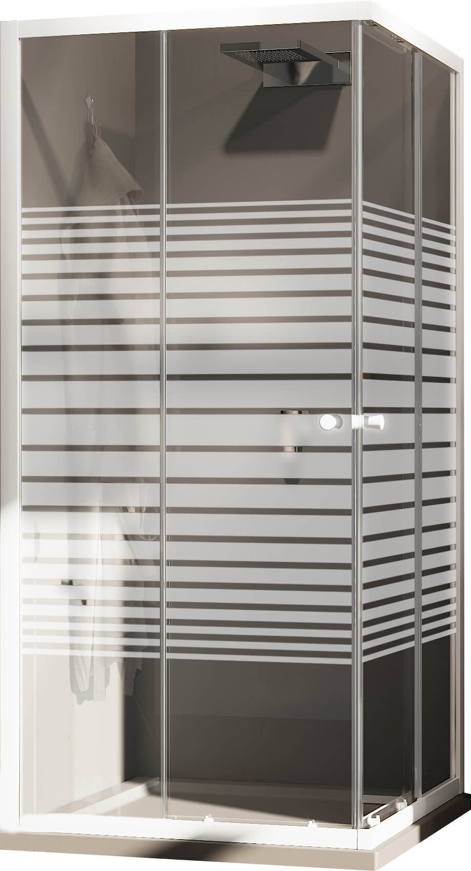 Box Doccia Angolare 2 Ante Scorrevoli in Cristallo Serigrafato 4mm H185 Fosterberg Tonder Bianco Varie Misure